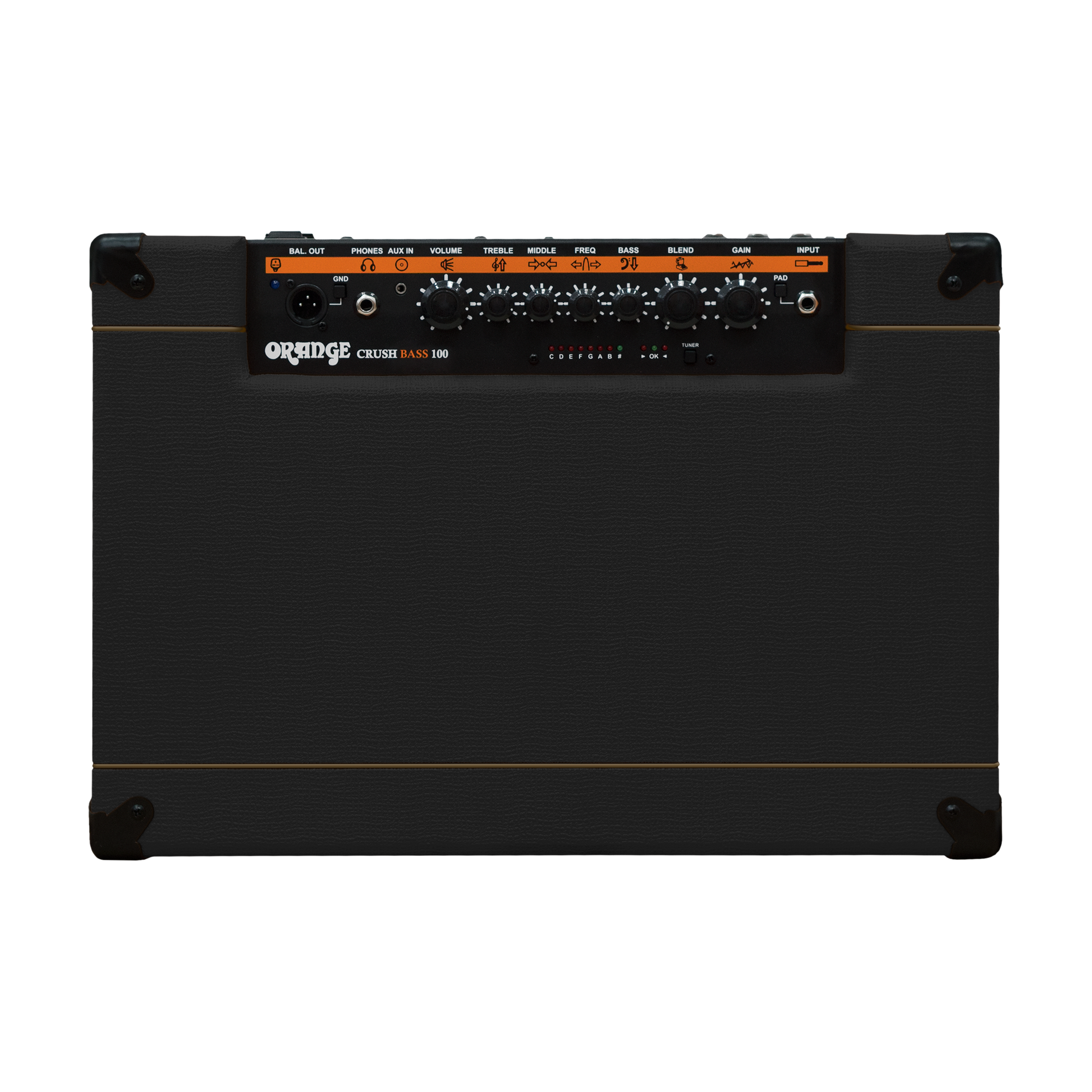 Ideal for silent practice and home use, the Crush Bass 100 is loaded with player-friendly features. The CabSim headphone output emulates the sound of a classic Orange bass cab, giving you a more authentic tone when practising with headphones. The aux input lets you plug in your phone or other audio device to jam along to tracks. And thanks to the built-in chromatic tuner, you’ll stay pitch-perfect without the need for extra gear or cables.
