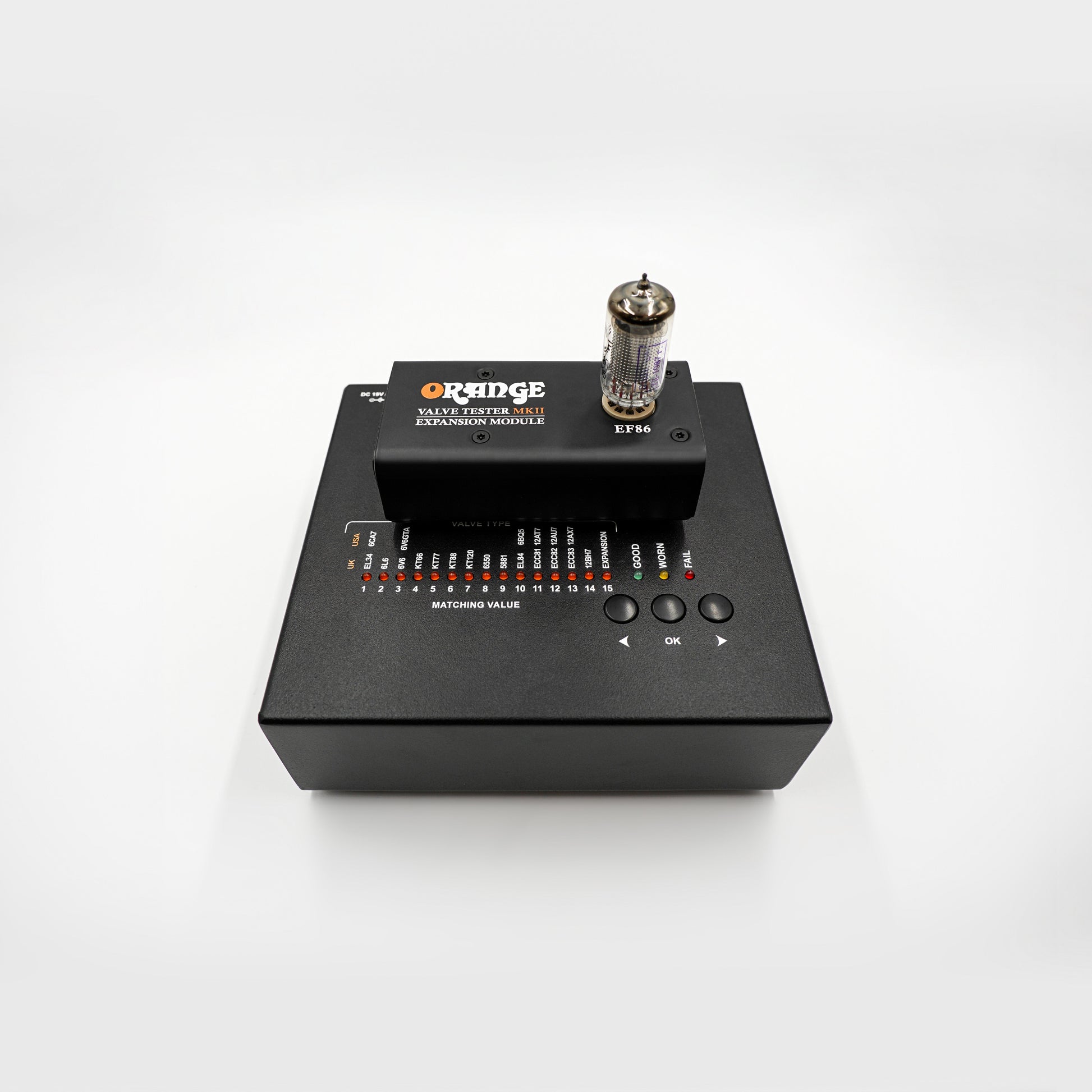 Valve testing has traditionally required charts, calibration, and technical know-how. The Valve Tester MKII changes that. Its onboard software automatically configures the test conditions for each valve type, giving you instant PASS, WORN, or FAIL readings with no guesswork. A numerical grading of each valve allows you to match valves of similar wear level for optimum audio performance. It’s fast, foolproof and safe to use, perfect for musicians, engineers or techs who need reliable information without hassle.
