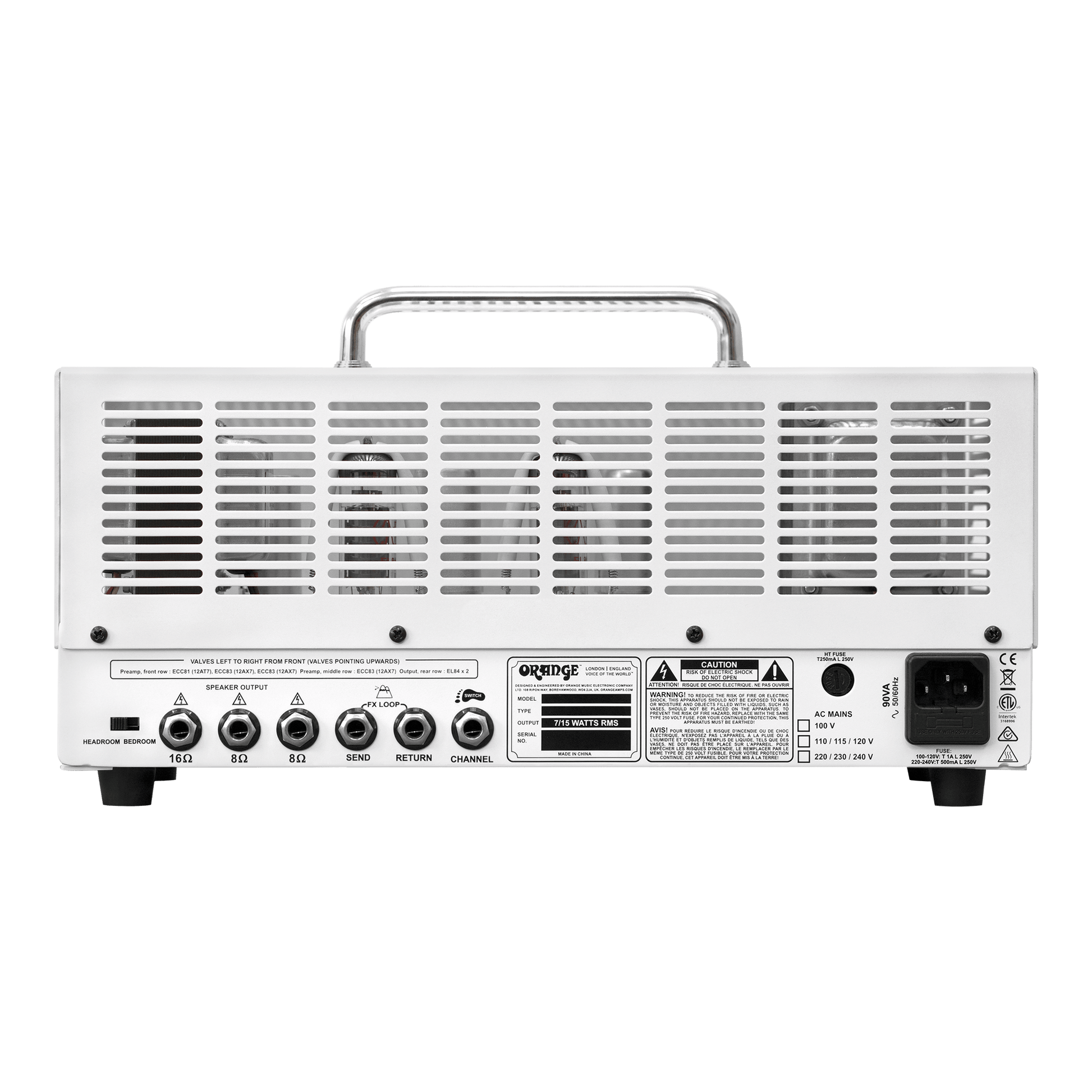 • Twin channel, valve buffered effects loop, half power mode & ‘headroom/bedroom’ attenuator switch.