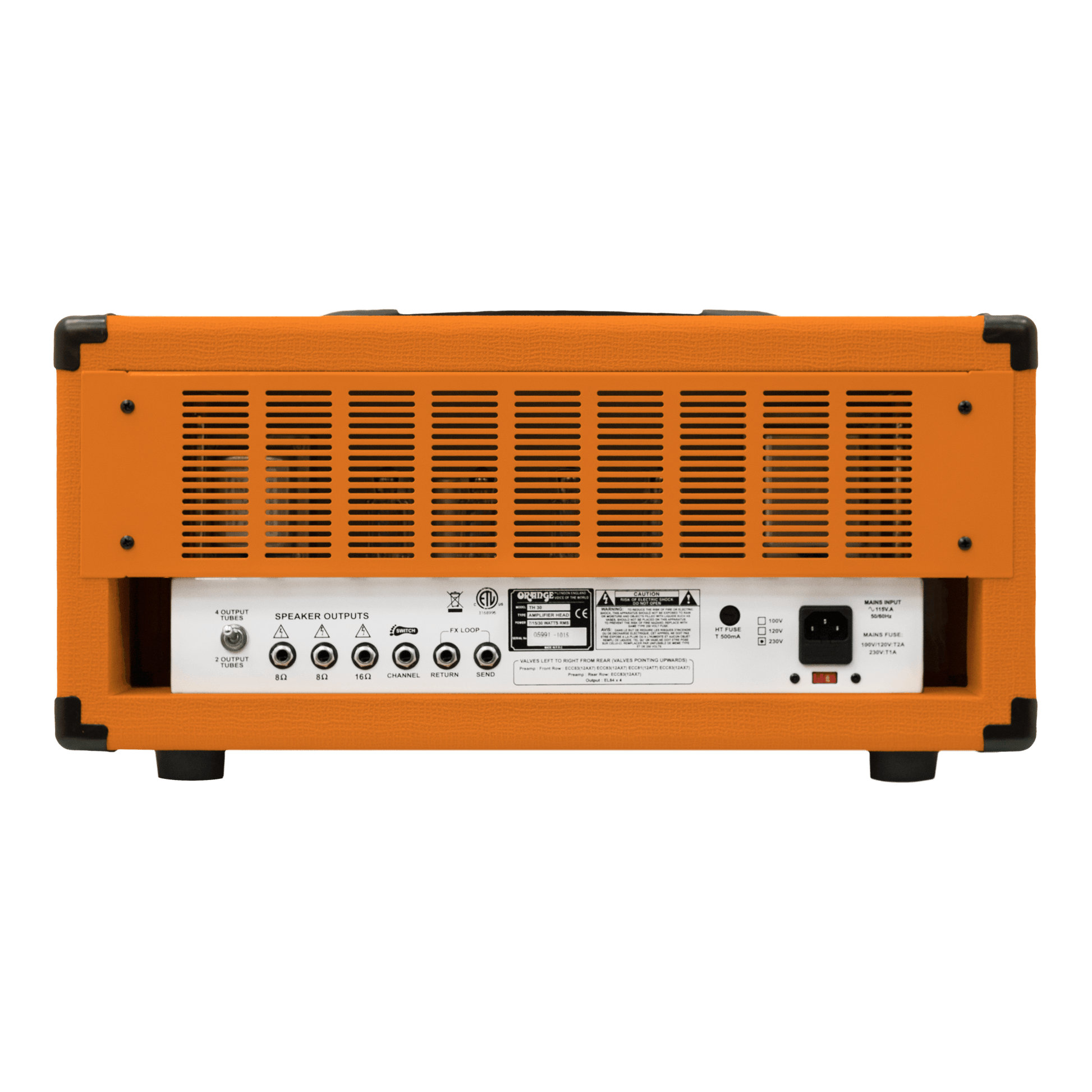 The amp’s EL84-driven output stage produces a rich, harmonically complex response, and with three output settings (7, 15, or 30 Watts), it’s just as at home in the studio as it is on stage. The all-valve signal path includes a transparent, valve-buffered effects loop, perfect for time-based pedals or external processors. Rugged and road-ready, the TH30 is an amp that takes you from pristine to punishing without ever losing its musicality. This is big Orange tone, tamed and tailored for the real world.